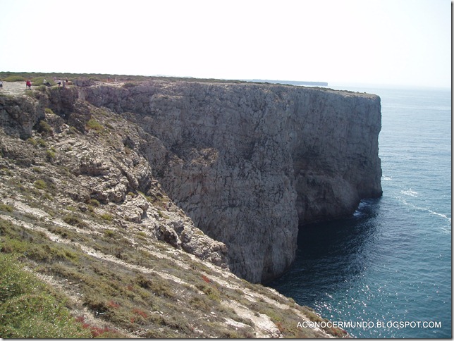 Sobre las 09’30 de la mañana salimos desde Isla Cristina directamente por la Autopista de “no pago” (todavía) Vía Infante de Sagres hasta el Cabo de San Vicente, 183 kmts., a las 11’40 ya estábamos allí. Creo que era el día más caluroso del año, pero como aún era temprano se podía resistir, lo malo estaba por llegar. Pongo esta maravillosa foto para que se vea la panorámica, es del diario del viajero, evidentemente yo no la pude sacar porque está tomada desde el aire.